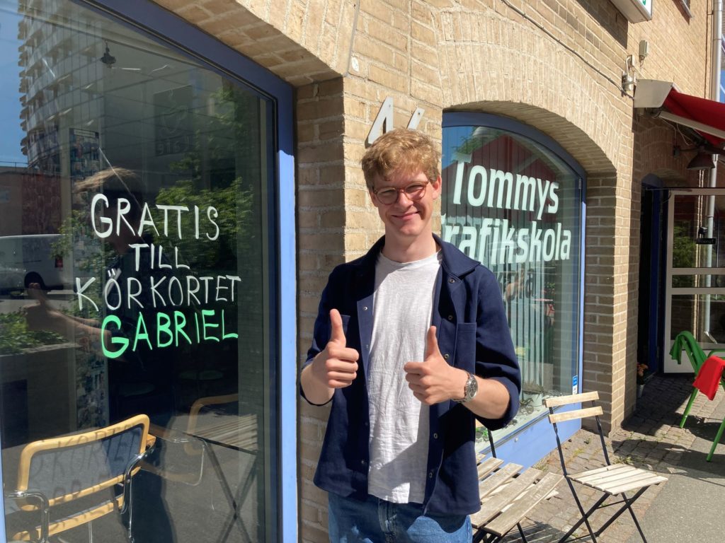 Precis som sin syster, ett par år tidigare, valde musicerande Gabriel att komma till oss på Tommys för att lära sig köra bil. Och lika duktig som sin syrra och målmedveten var även han! Körkortet behövde han även till lumpen, så vi hade ett tydligt mål. Gabriel tog körkort för manuell bil. Grattis!