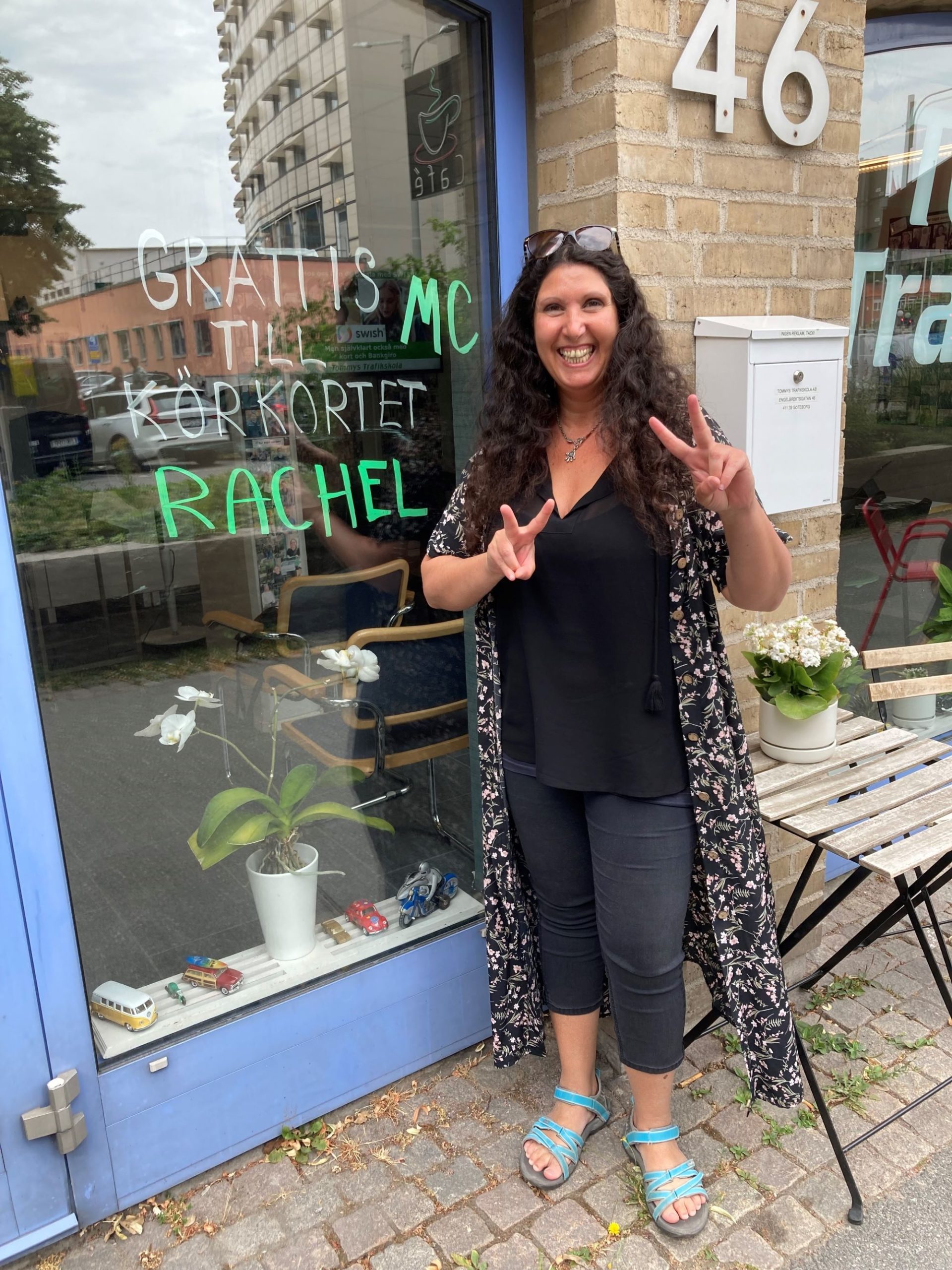 Här har vi Rachel som har haft körkort från Israel sen många år tillbaka. Hennes körkortsresa i Sverige har inte varit så lätt vilket gjorde att hon tog en paus från det. Men hon kom tillbaka stark och var beslutsam om att ta sitt körkort! Dagen hon körde upp började med kaos i kollektivtrafiken och hon kom till trafikskolan med andan i halsen. Men hur gick provet? Självklart godkänt med applåd från förarprövaren. Vi säger grattis till Rachel som nu kan ta bilen själv och skjutsa barnen till olika aktiviteter!